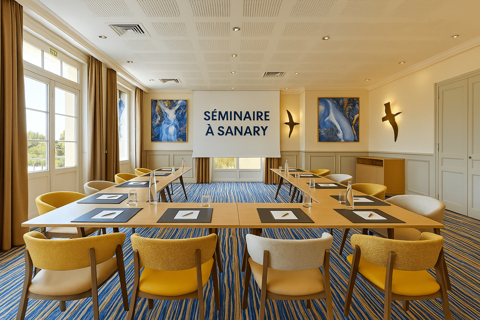 Le Best Western Plus Sanary vous propose un espace dédié aux séminaires de 150 m2 pour organiser tous types d’événements. Des réunions à taille humaine, grâce à nos 42 chambres et suites et notre espace de restauration privatisable.